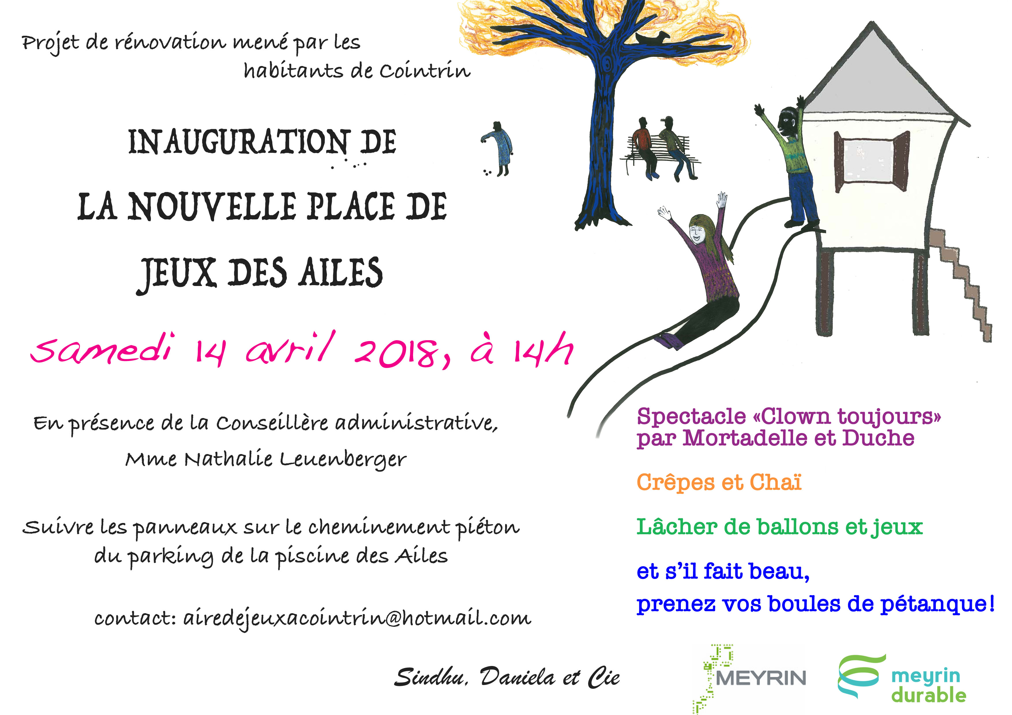 L'inauguration de la nouvelle place de jeux des Ailes à Cointrin (projet mené par les habitants de Cointrin) aura lieu le