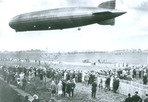 Le dimanche 14 septembre 1930, un « monstre des airs », le Zeppelin, attire à Cointrin une foule de 30'000 personnes. Si les Genevois avaient déjà pu le voir en vol en 1929, c’est la première fois qu’ils assistent à son atterrissage et peuvent admirer le dirigeable de plus près. Pour en savoir plus