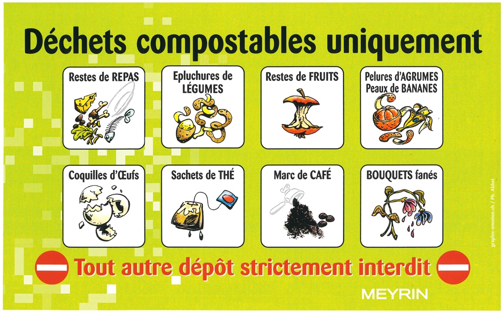 Les résidus de cuisine, les fleurs et les plantes d'appartement peuvent être déposées dans les sacs compostables du kit la "p'tite poubelle verte" qui seront ensuite à déposer dans les conteneurs verts des écopoints communaux.